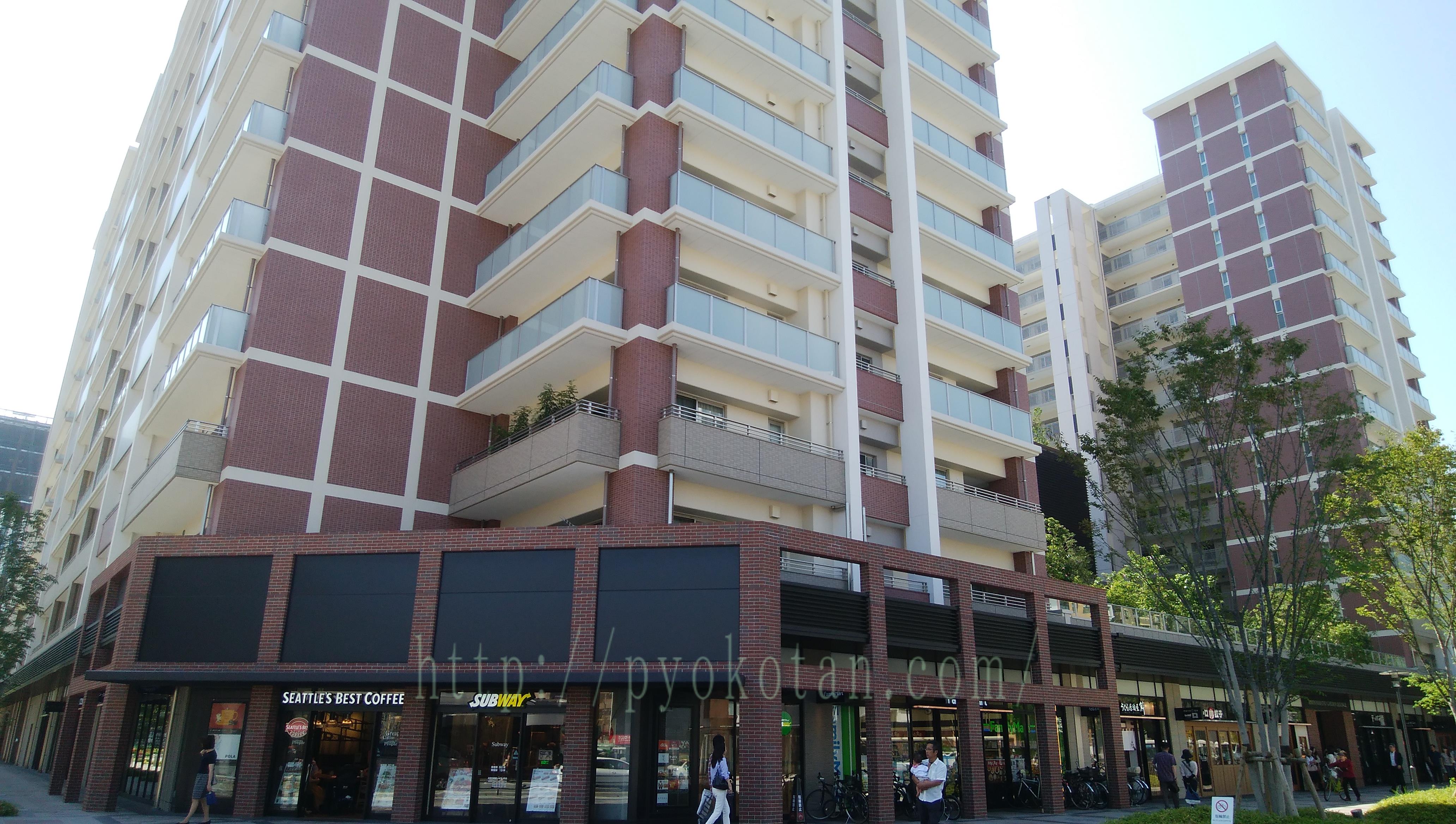 デザインが統一されて全部似たような外観で、九州大学六本松キャンパス跡地に新しい街をつくるというコンセプトで開発されています。