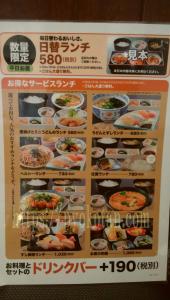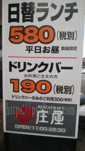 ↑庄屋ランチメニュー表。平日限定の日替わり以外にも土日関係なく頼めるお得なサービスランチメニューもあります。